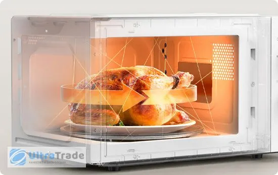 Встроенная вращающаяся стеклянная пластина обеспечивает трехмерный нагрев на 360°.