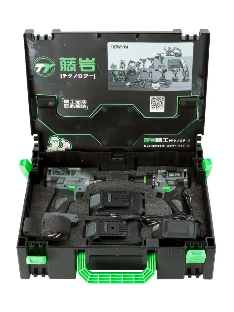 Набор инструментов TENYN 2 в 1Удобное и компактное решение для строительных и ремонтных работ в труднодоступных местах без розетки. Два мощных аккумулятора на 5 А·ч обеспечивают долгую работу и быструю зарядку. Инструменты из прочных материалов отличаются надёжностью и удобным дизайном. Подходит для профессионалов и любителей.