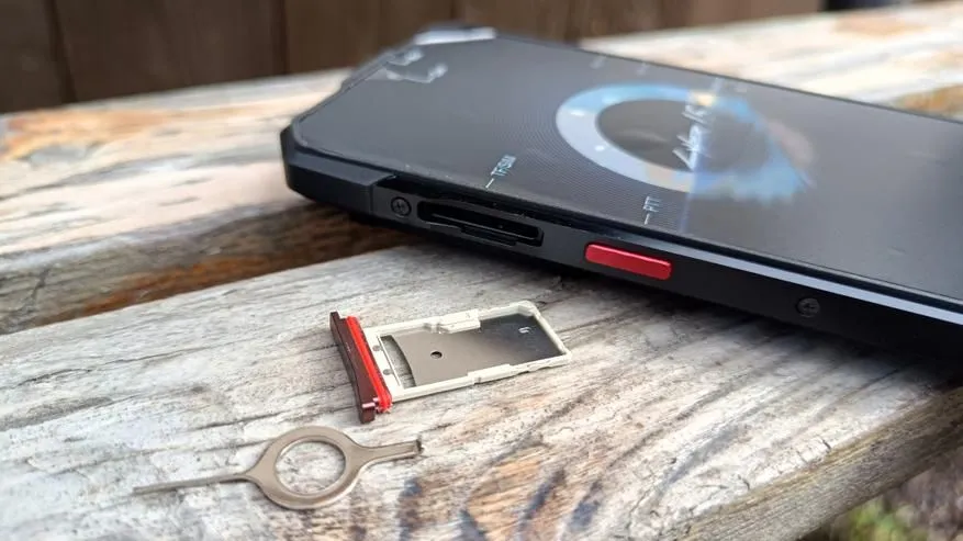 Есть еще стандартная «иголка» для извлечения лотка сим-карт, который предназначен для установки 2 симок или 1 симки + карта памяти. Сам лоток не скрыт в недрах корпуса, как частенько бывает у защищенных гаджетов. Но при этом на лотке присутствует уплотнительная резинка, которая должна защитить гаджет от повреждения водой.
