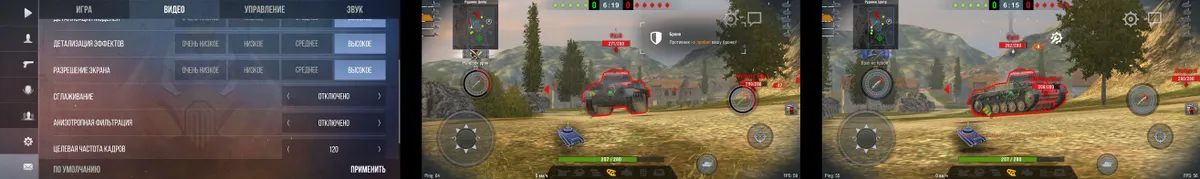Игровые возможностиИгровые возможности будем проверять на «танчиках», где смартфон с легкостью набирает под 60 fps, при этом установки графики находятся в максимально возможных значениях.