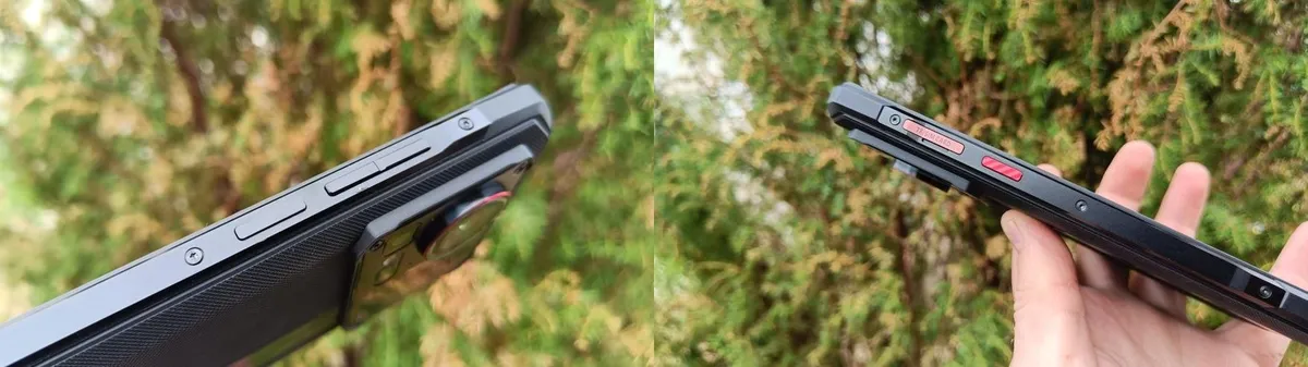 На других боковых гранях размещаются кнопка включения/выключения гаджета, а также регулировки громкости. Кнопки, скорее всего, сделаны из металла и имеют небольшую рифленую поверхность. Также есть базовая кнопка PTT с возможностью настройки под усмотрение пользователя. Серьезных ограничений по запускаемым функциям или программам не наблюдается, поэтому на нее можно вывести включение фонарика, активация вызовов, запуск программы или, что душа пожелает. Очень удобно, как быстрый старт, к примеру, той же игрушки. Также на боковых гранях размещаются металлические накладки, закрепленные винтами. Выглядит эффектно и добавляет пару баллов к выживаемости.