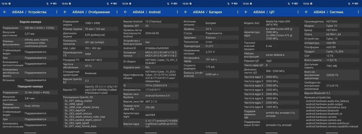 С помощью Aida64 можно посмотреть точные характеристики смартфона. Здесь все точно как в аптеке, все параметры совпадают с заявленными.