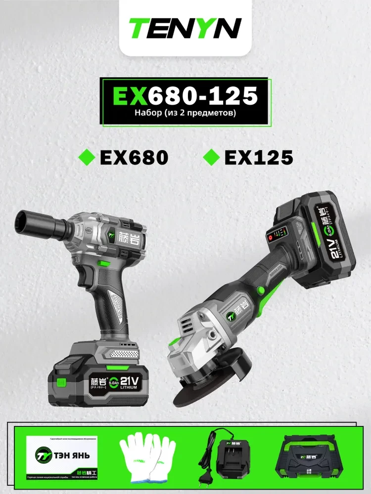 Набор профессиональных аккумуляторных инструментов 2в1: УШМ EX125 + Гайковерт EX680