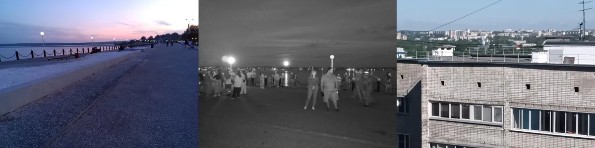 Фотографии в ночном режиме. Не самая мощная камера, но в ночном режиме можно разглядеть необходимые изображение, людей, животных или предметы.
