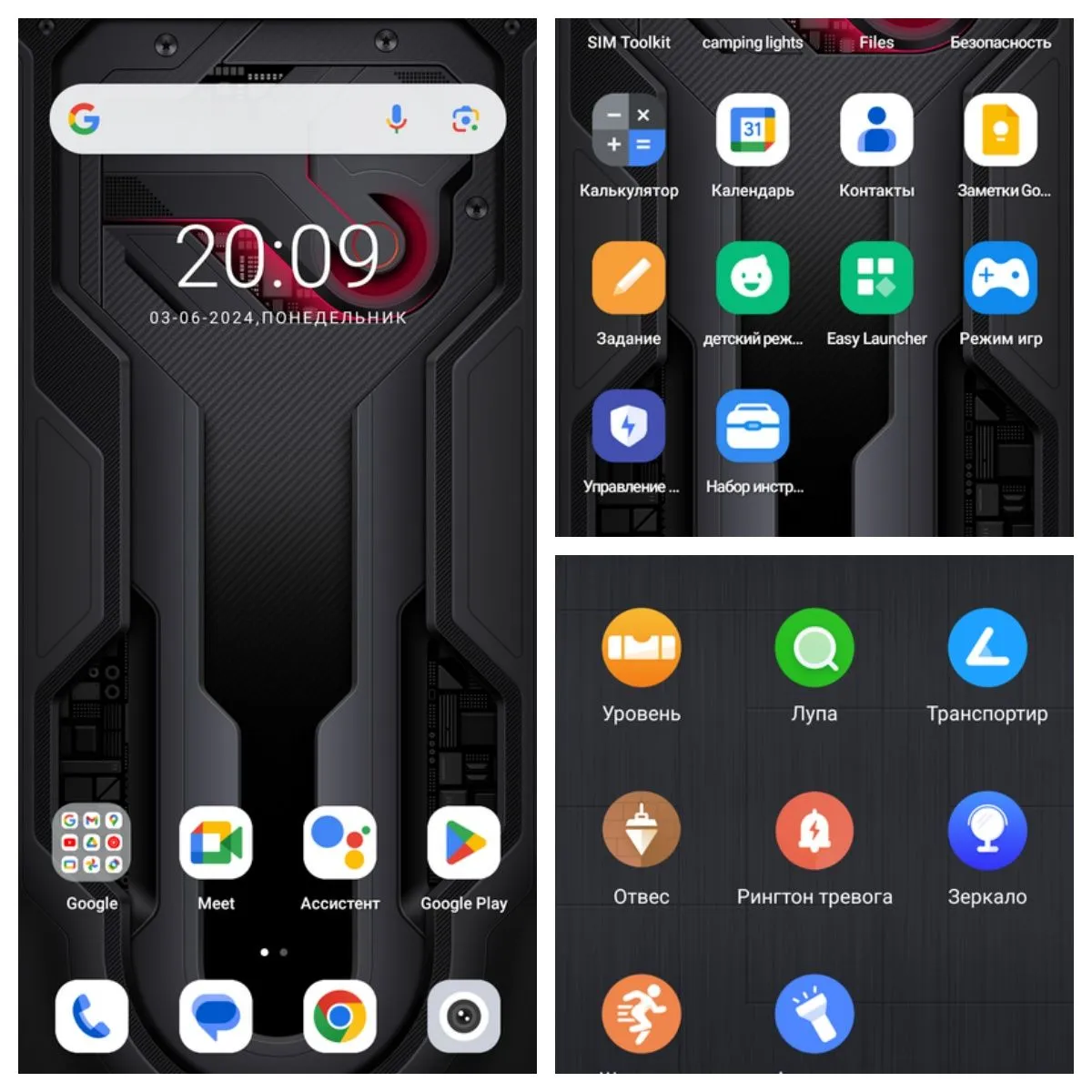 Основное меню и рабочий стол аналогичен гаджетам от данного производителя. Меню полностью переведено на русский язык, но некоторые пункты остались на английском. В базовом варианте присутствуют инструменты позволяющие проводить несложные операции со смартфоном.