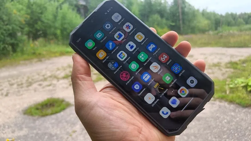 Корпус смартфона Hyper 7 Pro в защищенном исполнении. Присутствуют необходимые прорезиненные вставки по углам, экран слегка утоплен в корпус, тыльные камеры также имеют необходимую защиту.